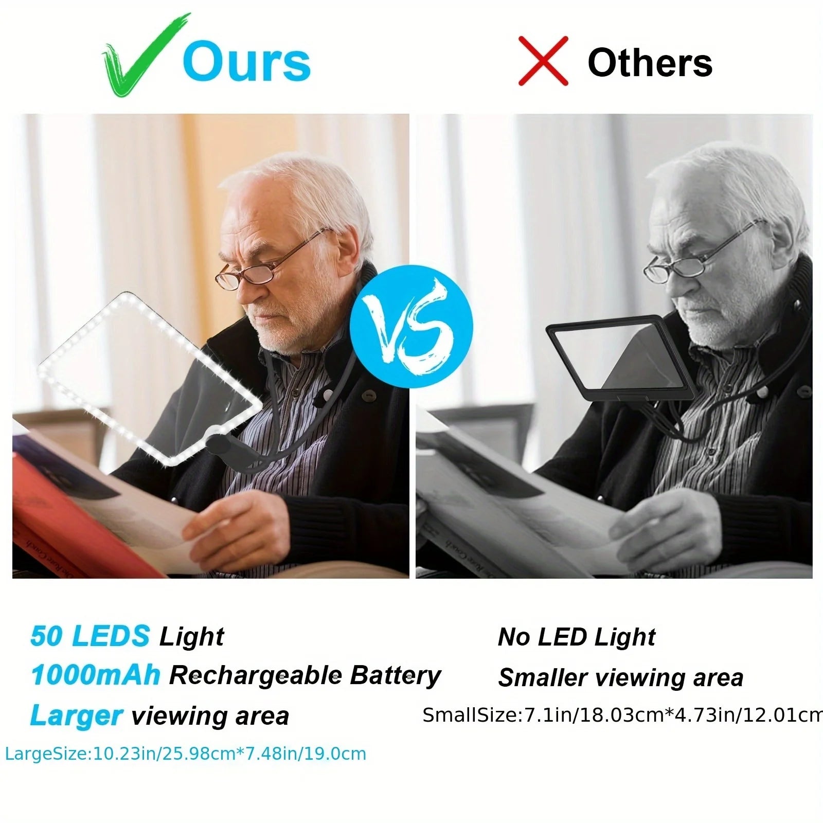 Large 10X Rechargeable Magnifying Glass with LED - Full Page for Reading